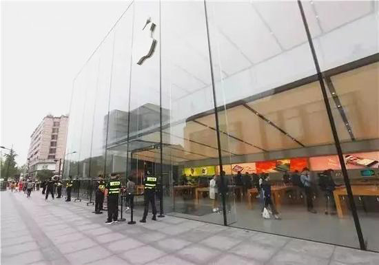 然而,今天的某蘋果直營店是這樣的,人呢,人呢?現(xiàn)場只有零星幾個(gè)安保人員!