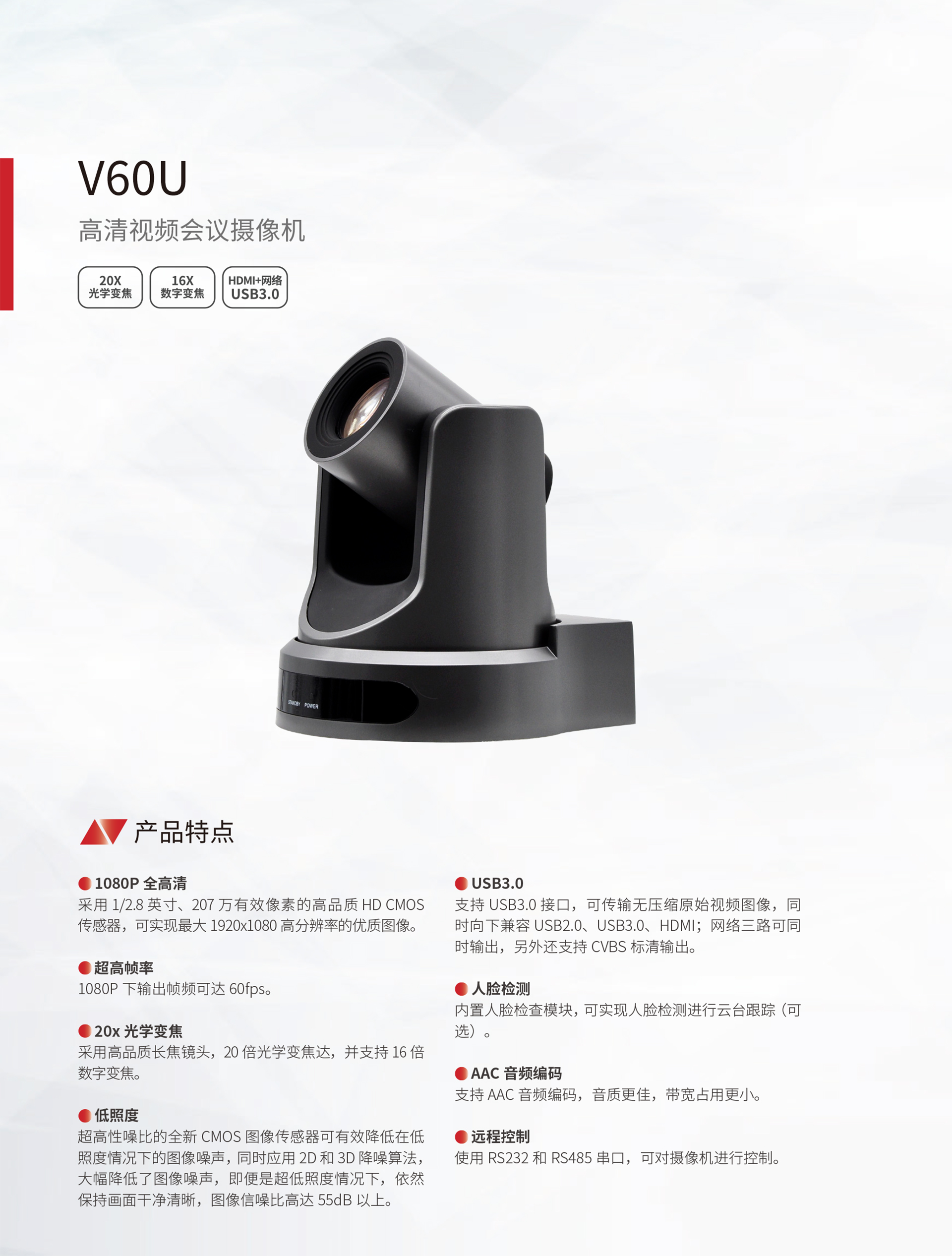 支持 USB3.0 接口,可傳輸無壓縮原始視頻圖像,同時向下兼容 USB2.0。USB、HDMI、網絡三路可同時輸出,另外還支持 CVBS 標清輸出。